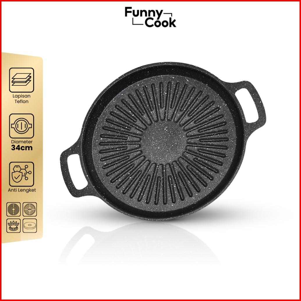 Funnycook Grill Pan 34 Cm Wajan Pemanggang Bulat Panggangan Bbq Anti Lengket