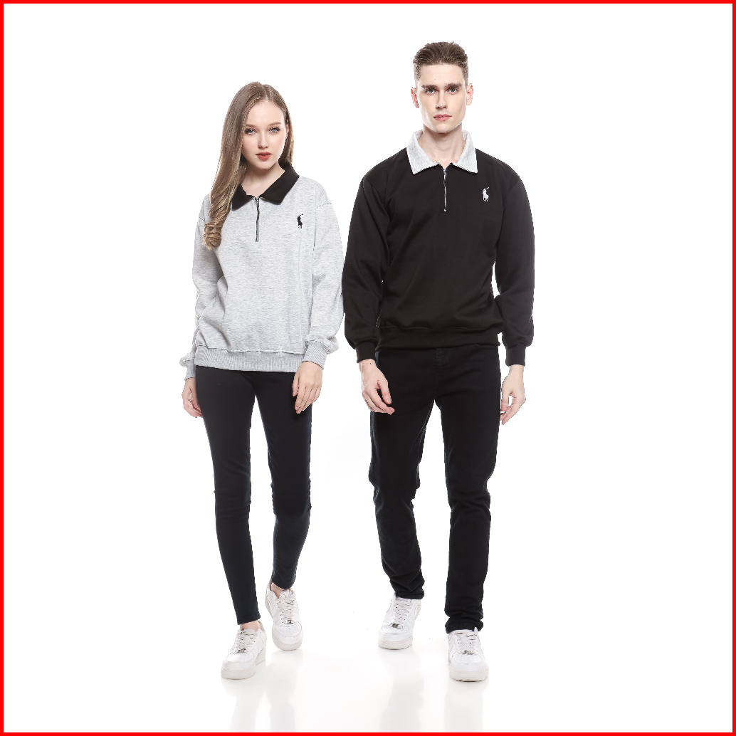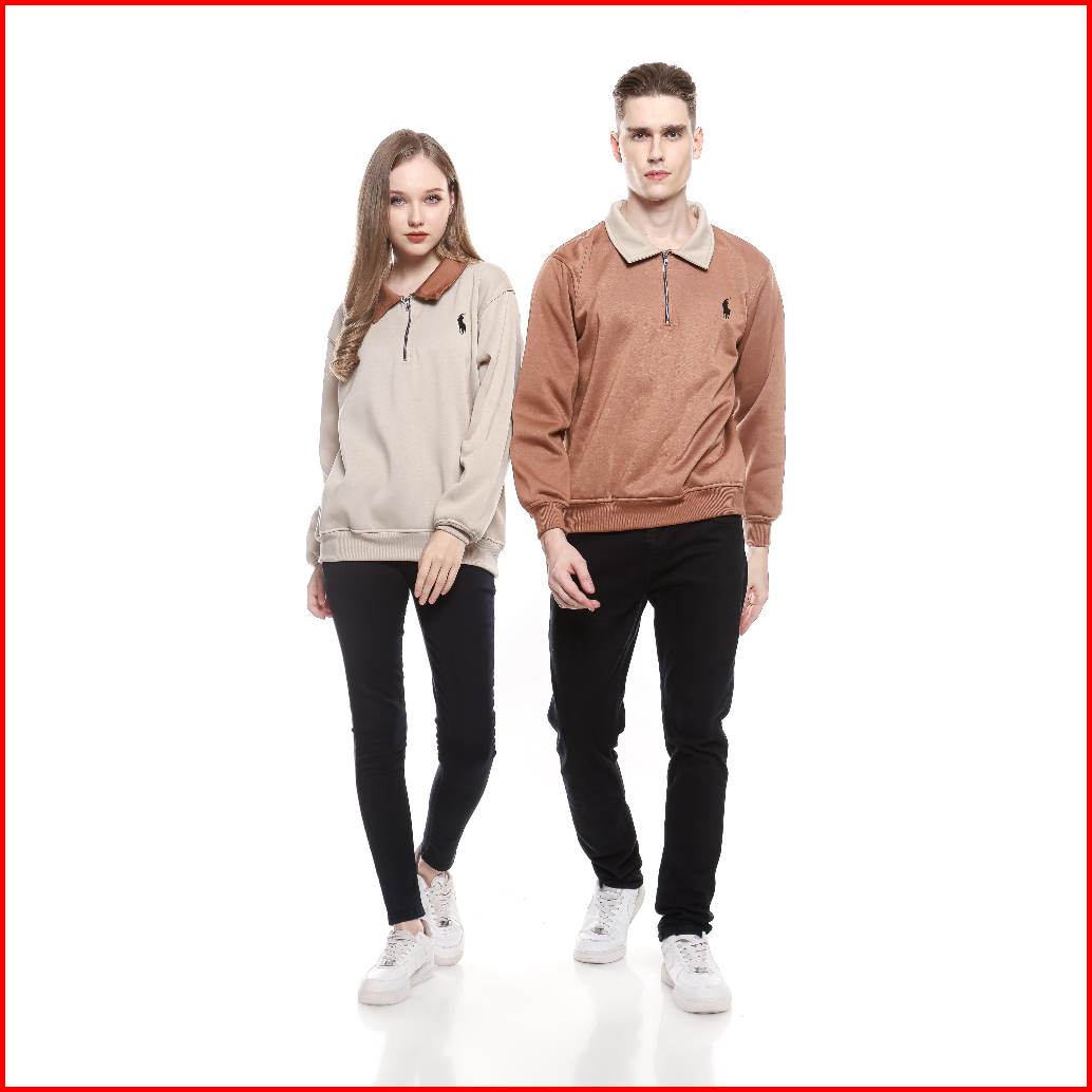 Sweater Crewneck Half Zipper Rugby Kerah Kombinasi Logo Bordir Premium Fleece High Quality Couple Pria Wanita Casual Len
