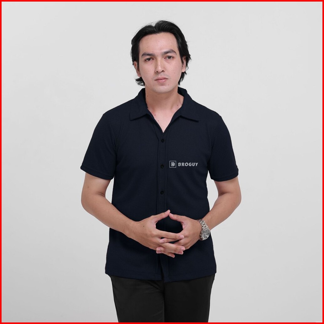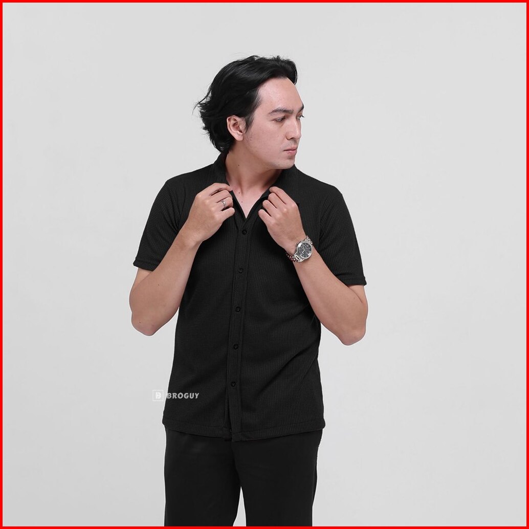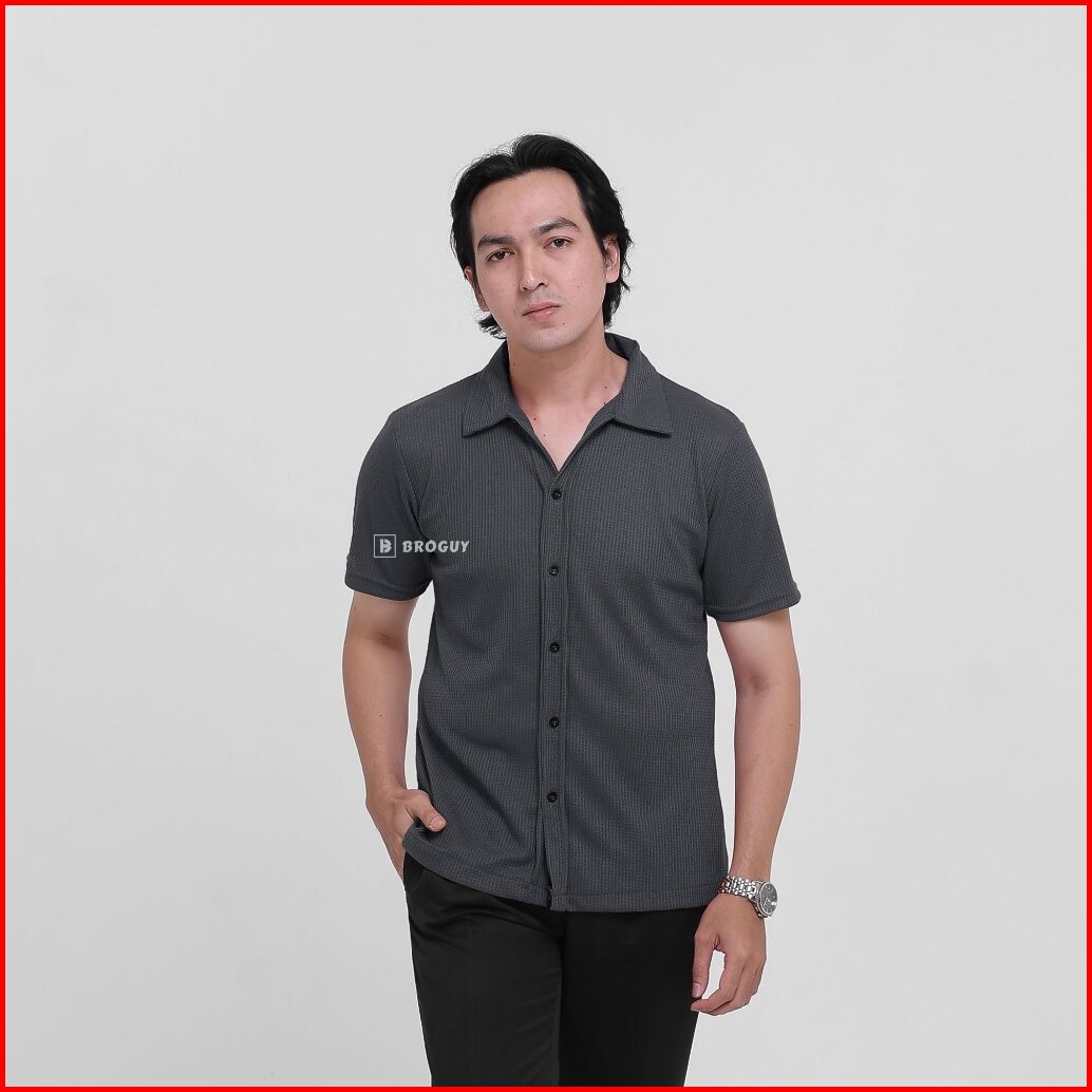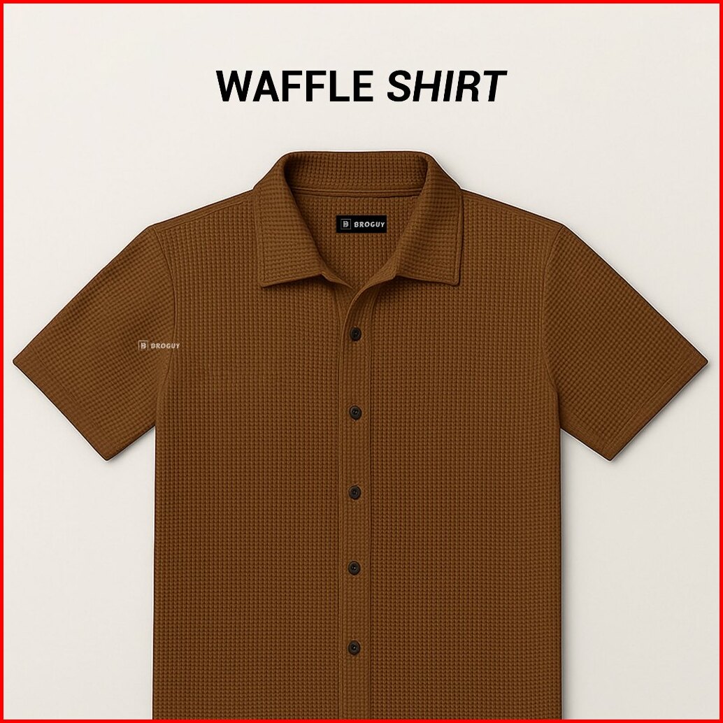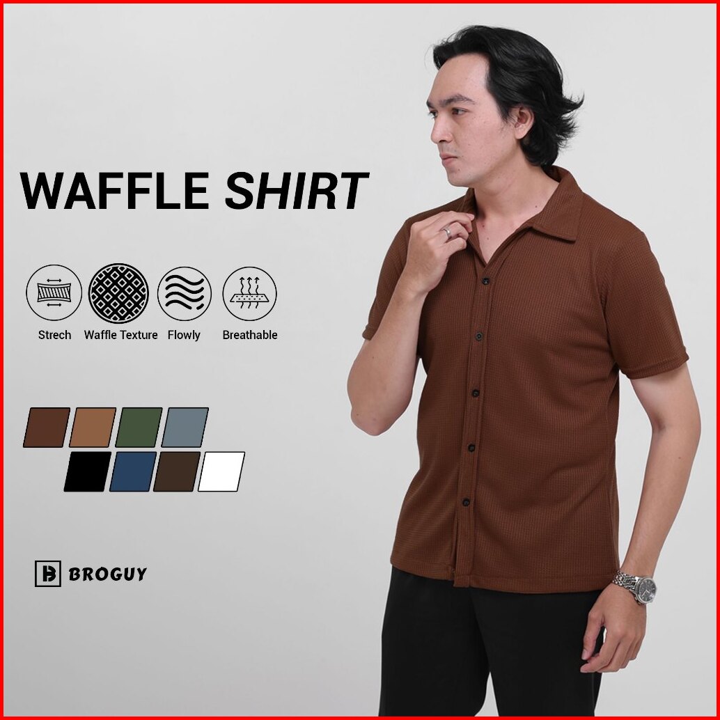 Broguy Kemeja Pria Casual Lengan Pendek Waffle Knit Slimfit - Chestnut