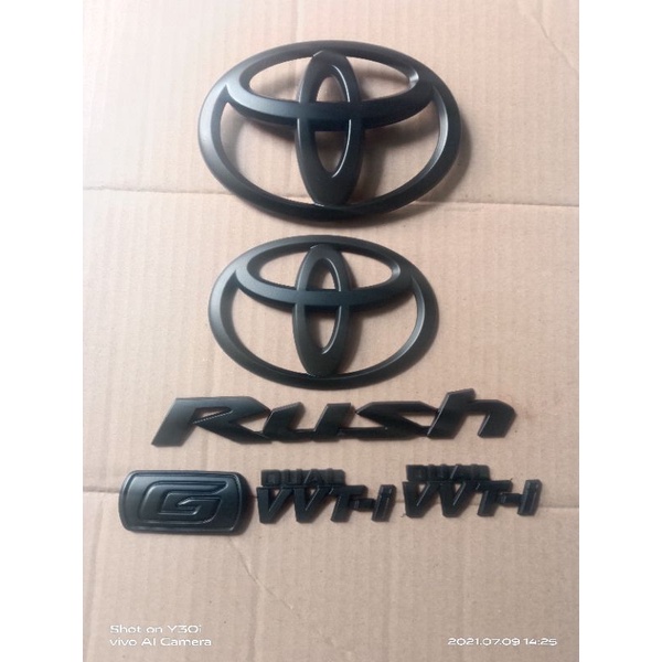 Emblem logo tulisan Rush dualvvti logo depan belakang dan tipe G hitam dof dan hitam glossy complid