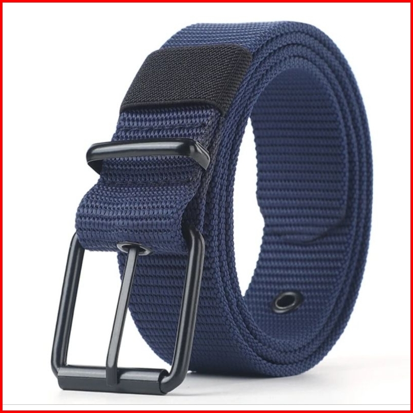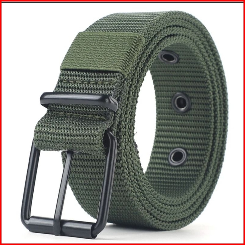 Sabuk Kanvas Berlubang Sabuk Gesper Jarum Pria Versi Korea Pemuda Pelajar Sabuk Jeans Serbaguna Latihan Militer Extender
