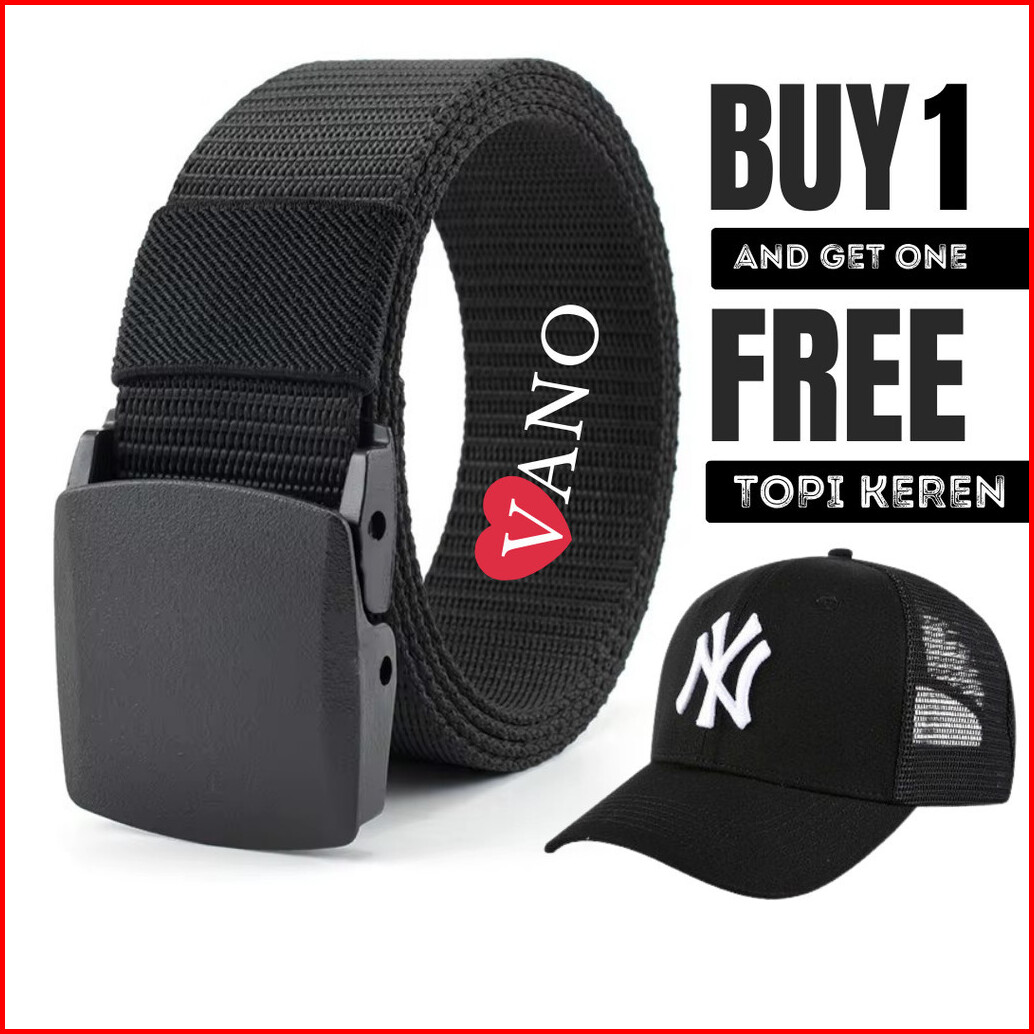 Best Seller Di Ikat Pinggang Pria Bonus Topi Keren Panjang 115-120cm Gesper Pria Kerja Dan Sekolah