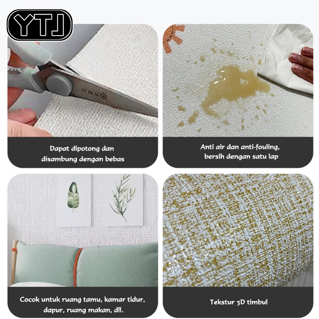 YTJ Wallpaper Linen Roll Wallpaper Dinding Stiker Dekorasi Kamar Sticker Dinding Sederhana Warna Wallfoam Uk 280cm50cm