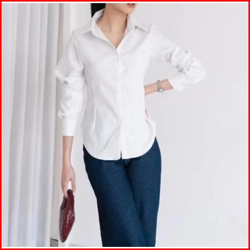 Netto -luna Stripe Long Sleeve - Kemeja Fitted Wanita - Atasan Lengan Panjang