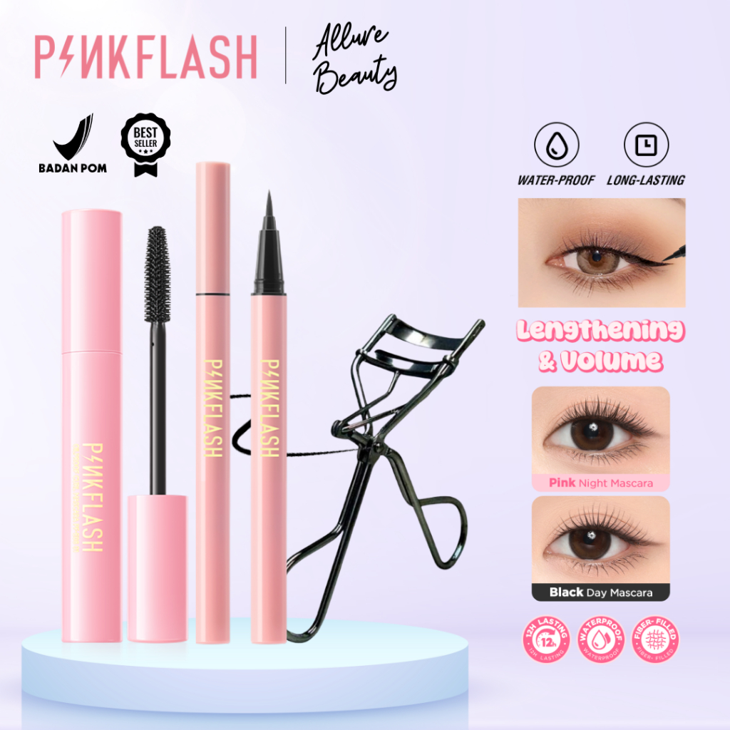 (FREE PENJEPIT BULU MATA) PINKFLASH 2PCS EYESET Mascara & Liquid Eyeliner #OhMyLine 2PCS Bundle Set Brown Volumizing Wat