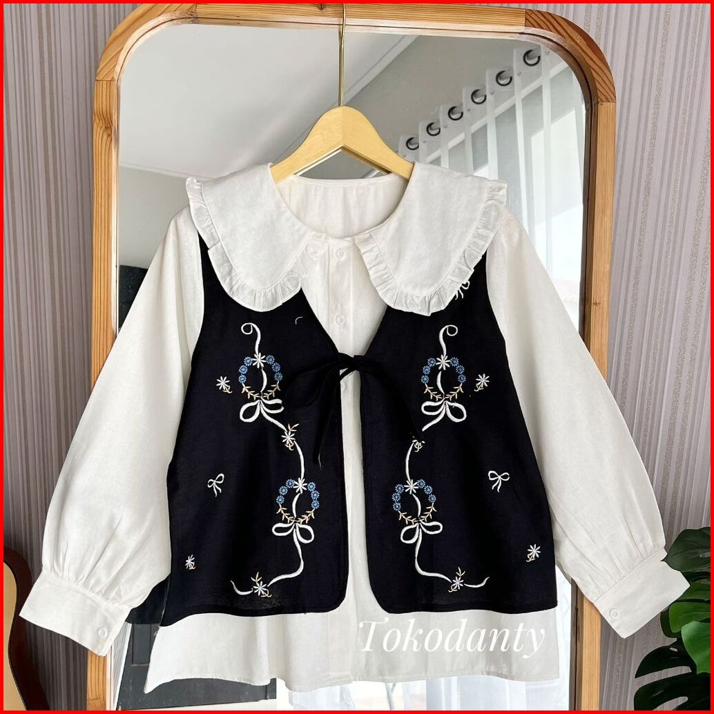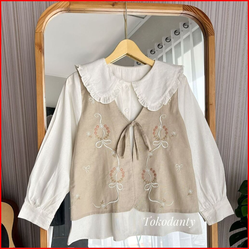 Kamari Shirt Atasan Kemeja Wanita Lengan Panjang Katun Linen Bordir
