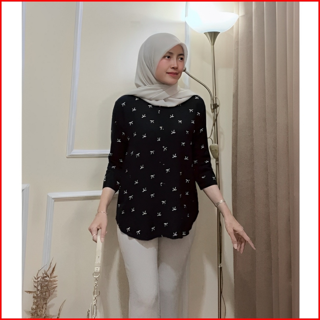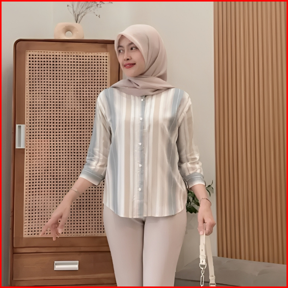 Promo Murah Meriah Atasan Wanita Daily Top Blouse Motif Salur Lengan 7 8 Ld 120cm Kekinian