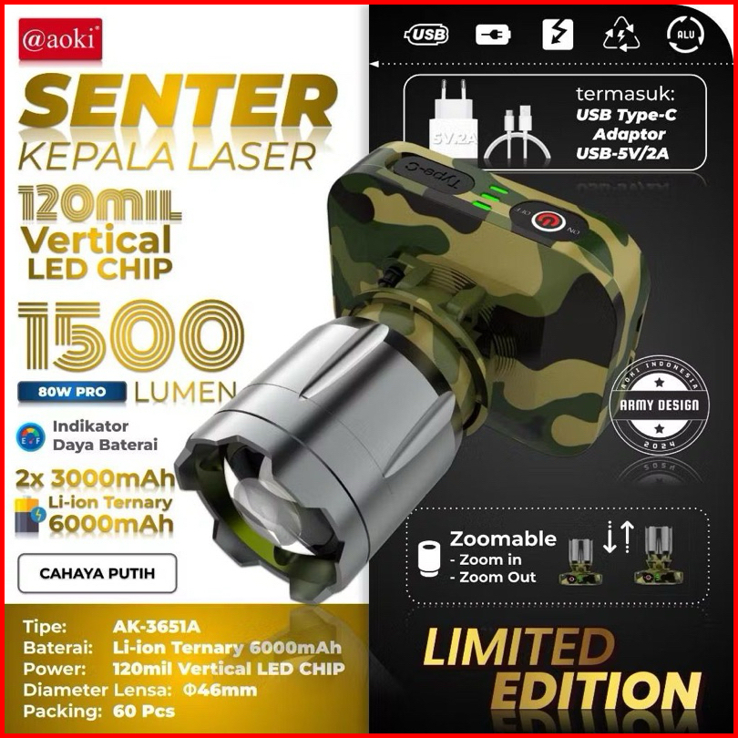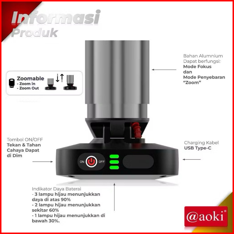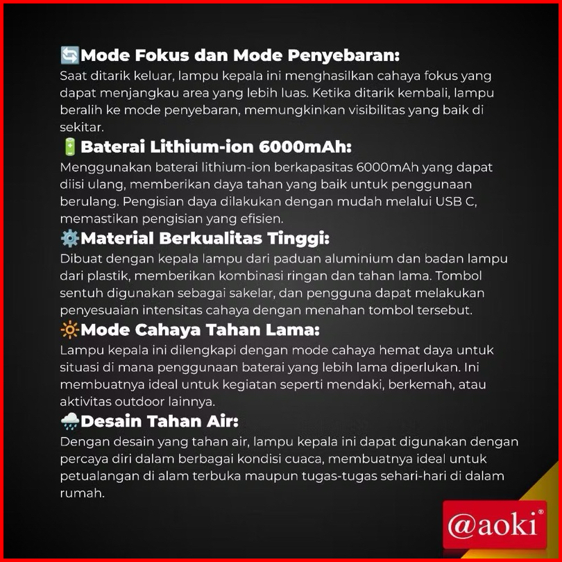 Senter Kepala Zoom 80w Aoki Ak-3695a K Tahan Air