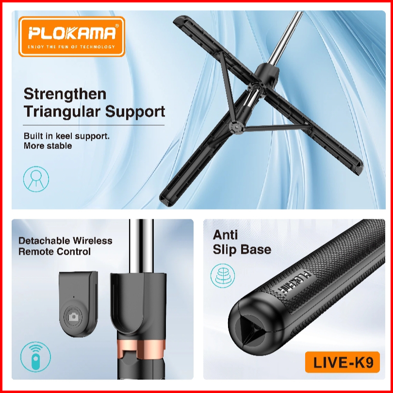 Rccor Tripod Bluetooth Selfie Stick 1.7m 360 Rotasi Praktis Fleksibel