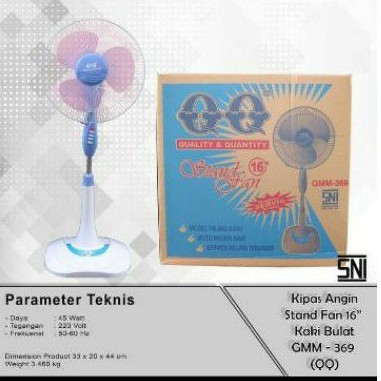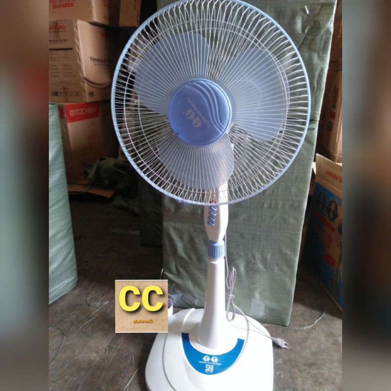 [Star] STANDFAN QQ 16INC KAKI BULAT KIPAS ANGIN BERDIRI QQ putih dan hitam dan baling bes