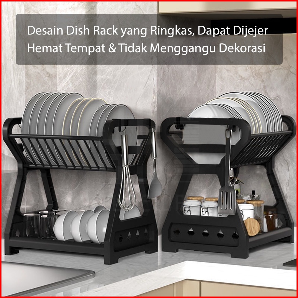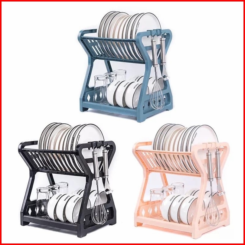 Rak Piring Plastik 2 Susun Dish Drying Rack 2 Layer Wadah Tirisan Cucian Mangkok Serbaguna Mofan