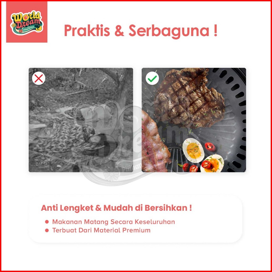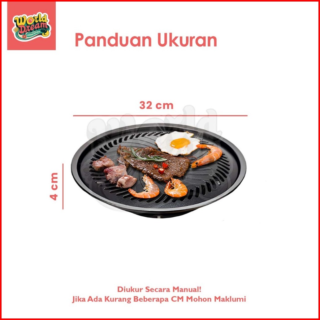 Worlddream Alat Pemanggang Bbq 32cm Grill Pan High Quality Panggangan Portable Panci Deep Fry