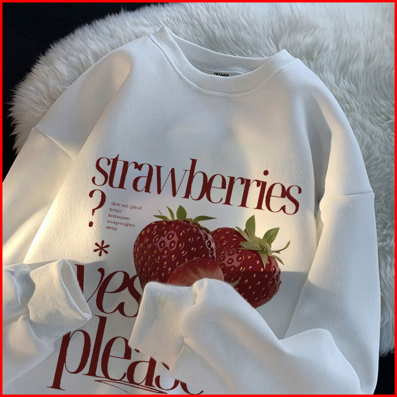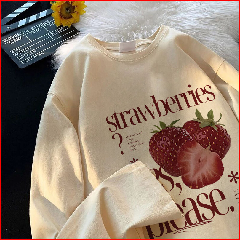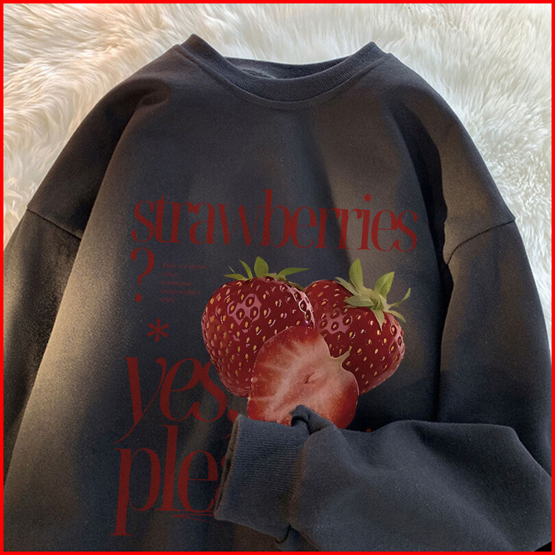 Po Floret Sweater Crewneck Oversize Wanita Delicious Strawberry Korean Print Korean Style Sweater Wanita Original 100 Co