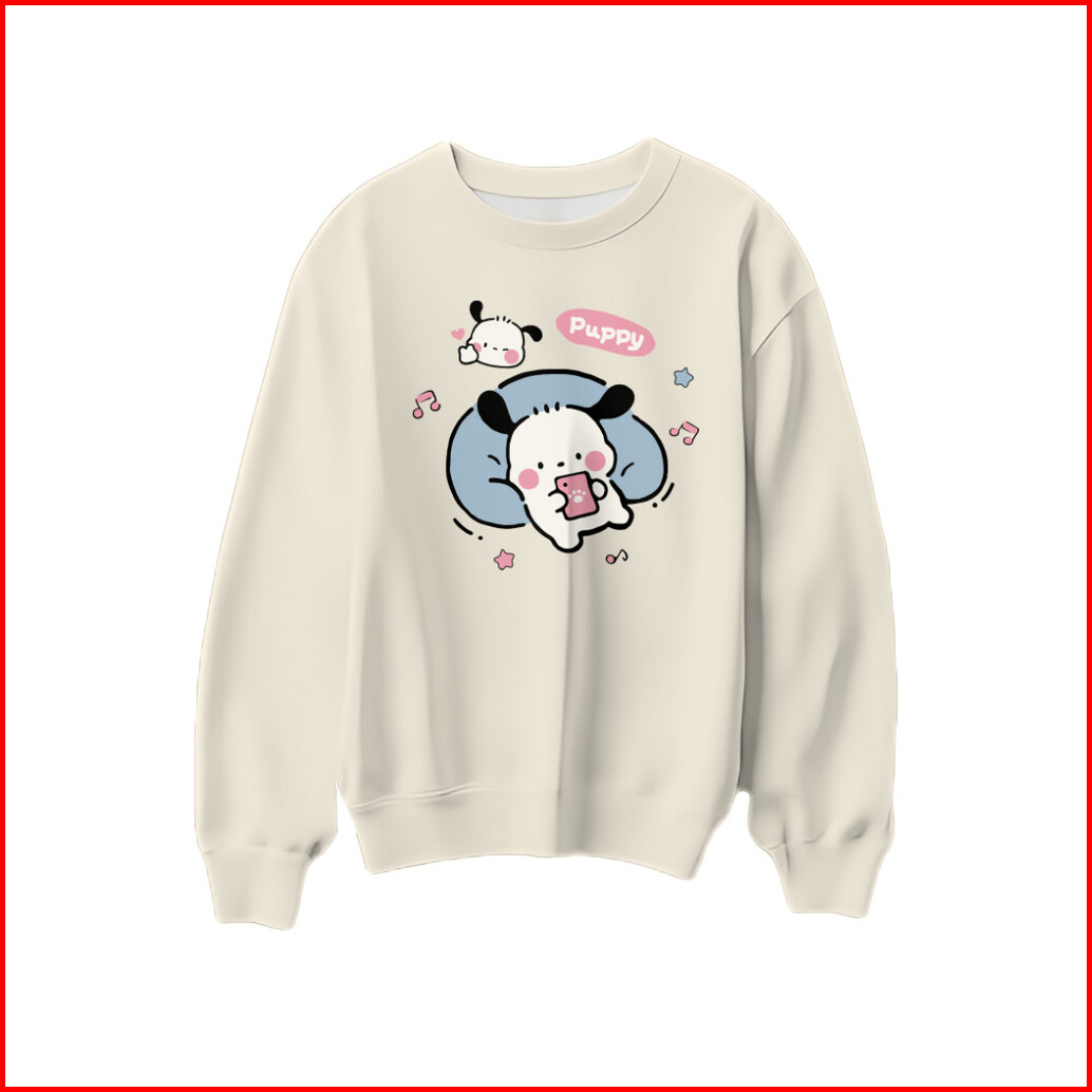 Korean Premium - Sweater Oversize Motif Puppy Cute Sweater Wanita Bahan Cotton
