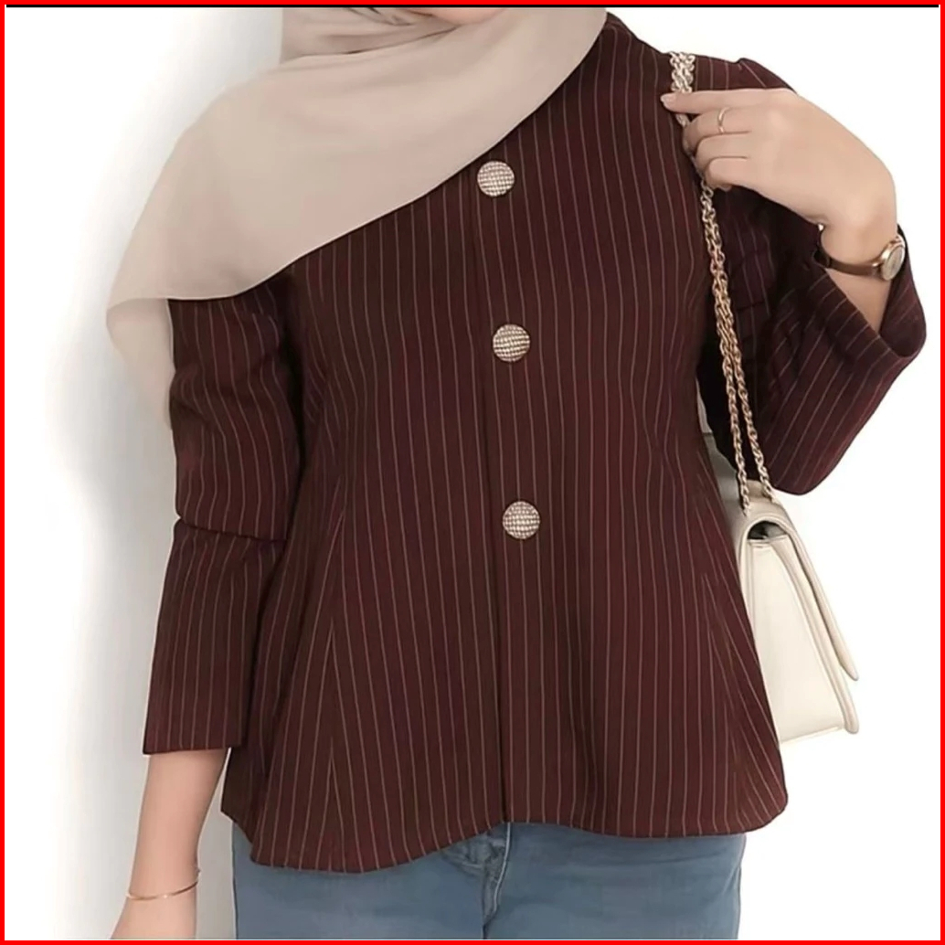 Kemeja Semi Woll Wanita Terbaru 2025 Korean Style Kekinian Tangan Panjang