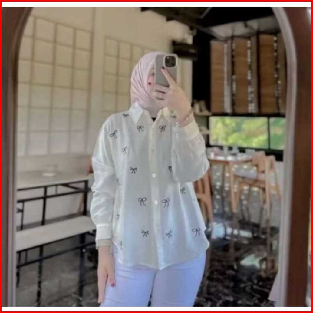 Baju Atasan Wanita Terbaru Bordir Pita Kecil Kemeja Wanita Bahan Adem Jumbo