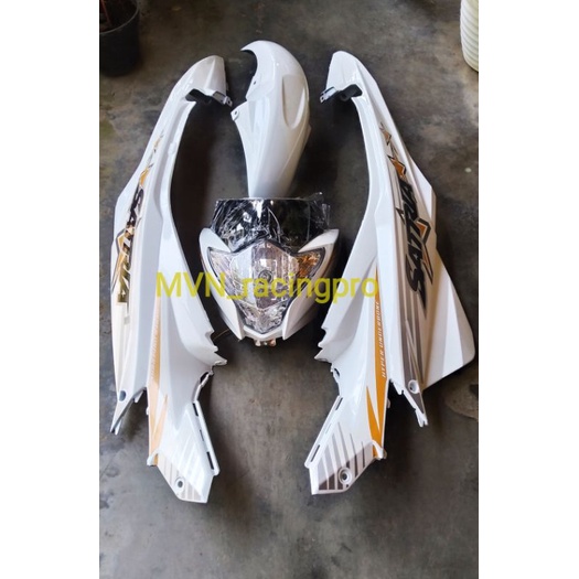 Cover body bodi kepala set slebor legcil legsil SUZUKI SATRIA F FU FL FACELIFT warna putih + sticker BAHAN TEBAL MIRIP ORI