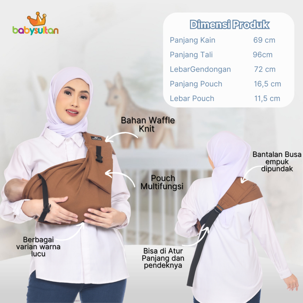 Babysultan Waffle Baby Pouch Adjustable dengan Busa Empuk dan Pouch Multifungsi Gendongan Bayi Instan Premium dari Newborn sampai Toodler