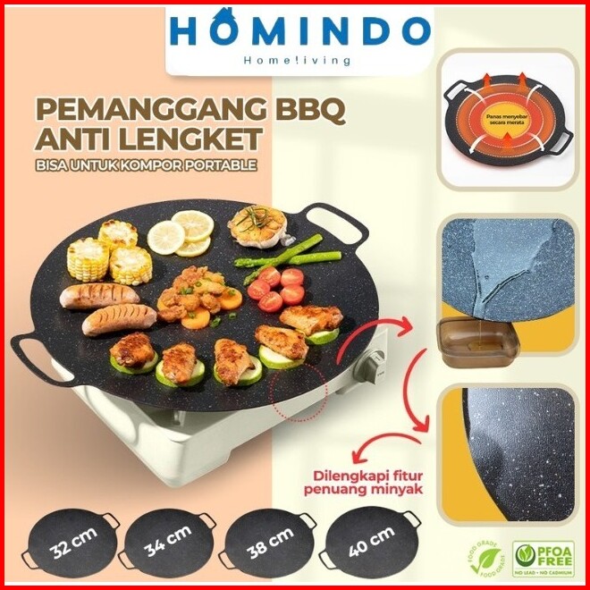 Termurah Homindo Mall Alat Panggangan Bbq Grill Pan Korea Wajan Bulat Anti Lengket Serbaguna