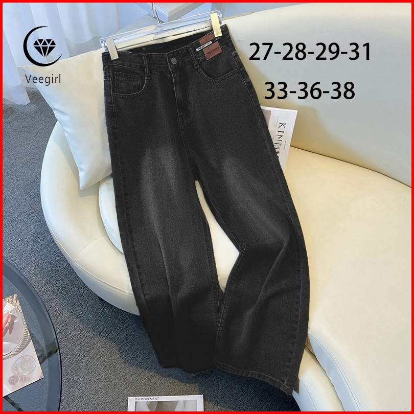 Veegirl Celana Jeans Loose Highwaist Jumbo Celana Korean Style Jeans Wanita Panjang Baggy Pants Casual Celana Jeans Abu