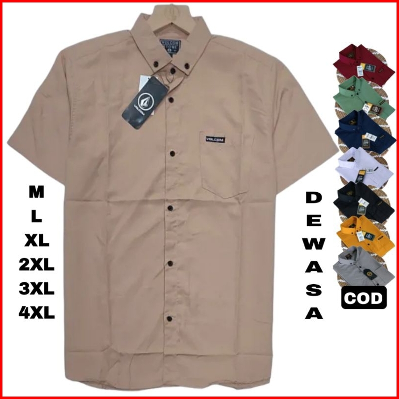 Baju Kemeja Polos Pria Lengan Pendek Hem Basic Kerja Formal Slimfit Mustard Sage