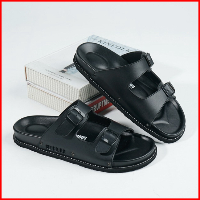 Glorious - Sage Strong Black Sandal Formal Casual Pria Wanita Kulit Slide Slop Distro Hitam Stylist