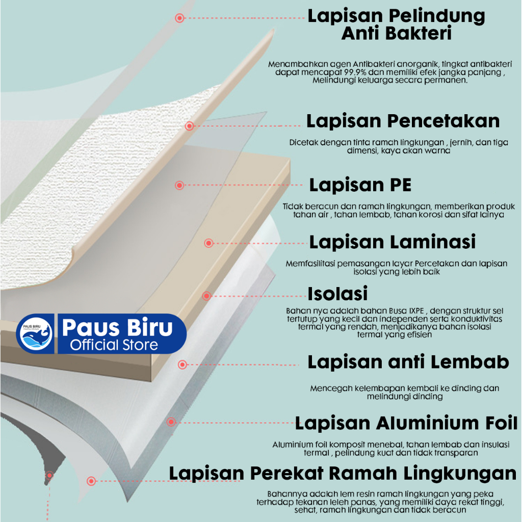 Paus Biru - Wallpaper foam Linen Roll Wallpaper Dinding form Dekorasi Kamar Kelas atas
