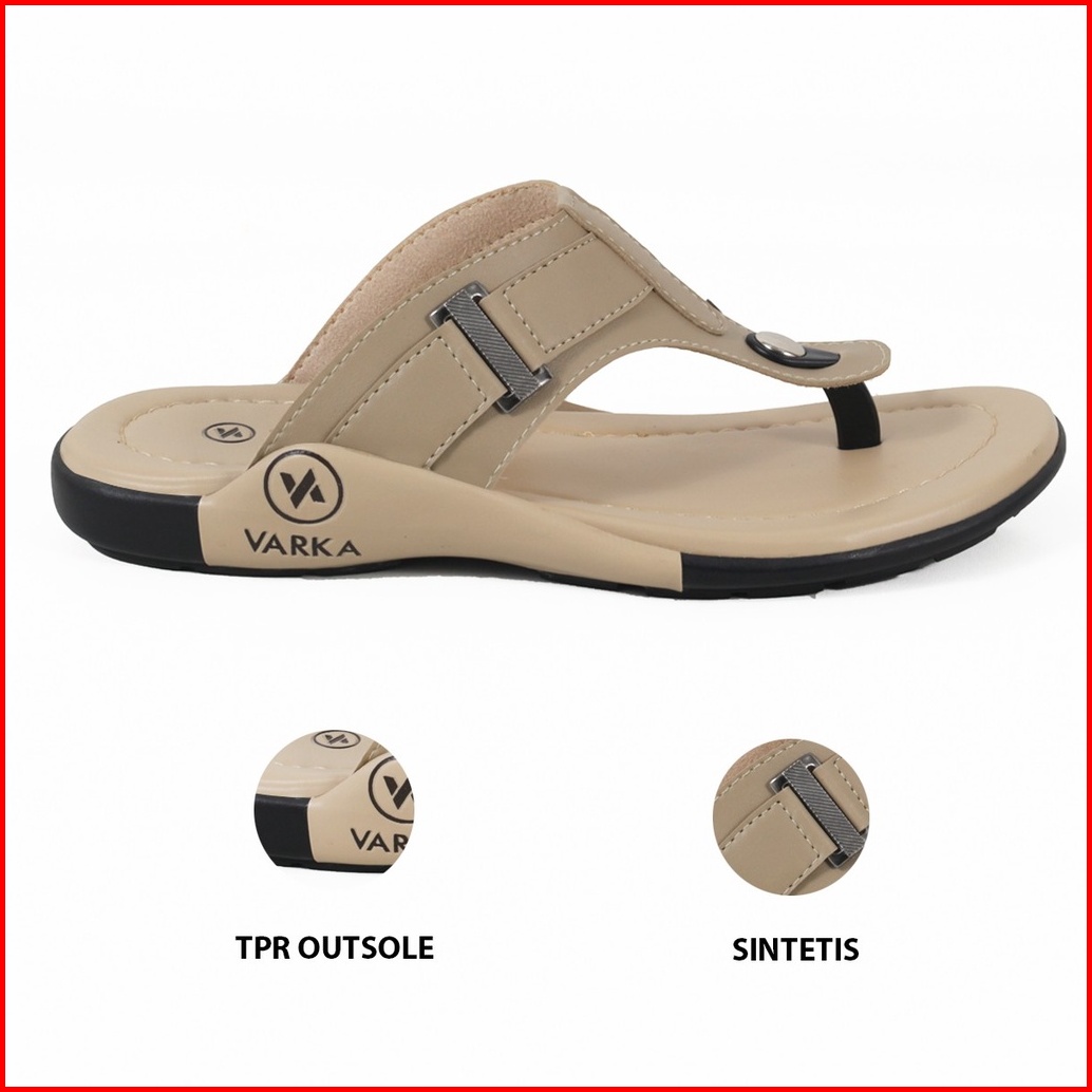 Sandal Pria Terbaru V 7034 Brand Varka Sandal Jepit Kulit Sintetis Santai Jalan-jalan Berkualitas Warna Krem