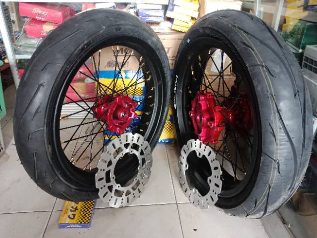 Sepaket Velg Supermoto CRF 150 Velg Sumo ring 17 sama Ban Tubles tromol CRF pemakain PNP
