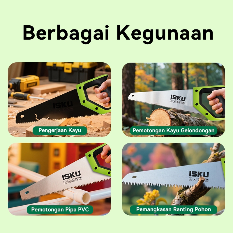 Gergaji Tangan + Gergaji Lipat, Gergaji Gigi Tiga Sisi, Anti Selip, Set Gergaji Tangan Pertukangan