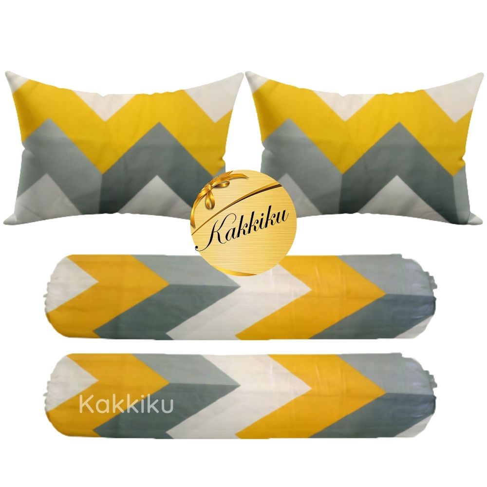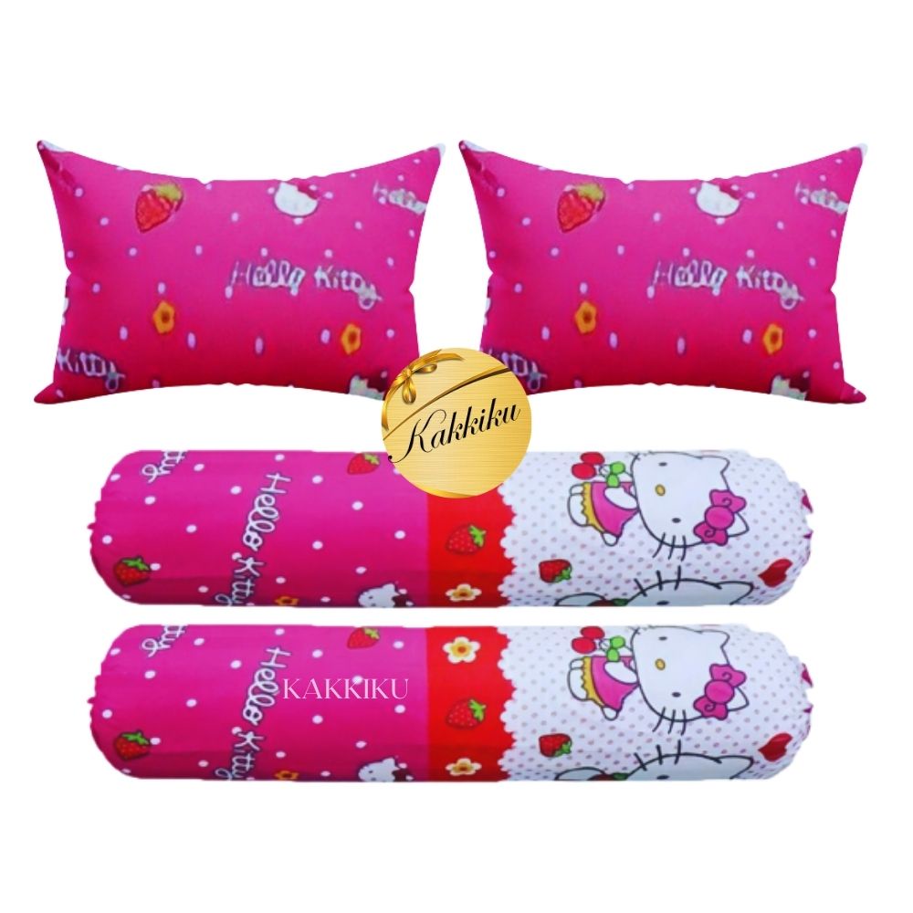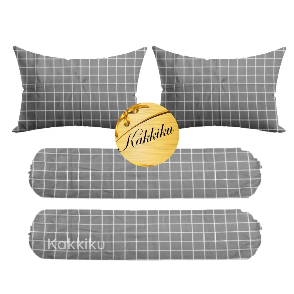 4 pcs 2 Sarung bantal + 2 Sarung Guling motif Aaesthetic Kotak Garis dan Karakter