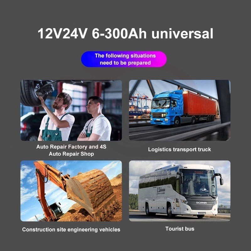 Charger Aki Otomatis Smart Intelligent Auto Repair Mobil Motor Kapal Truck Portable 400W 12V/24V 3800AH/Car Battery Char