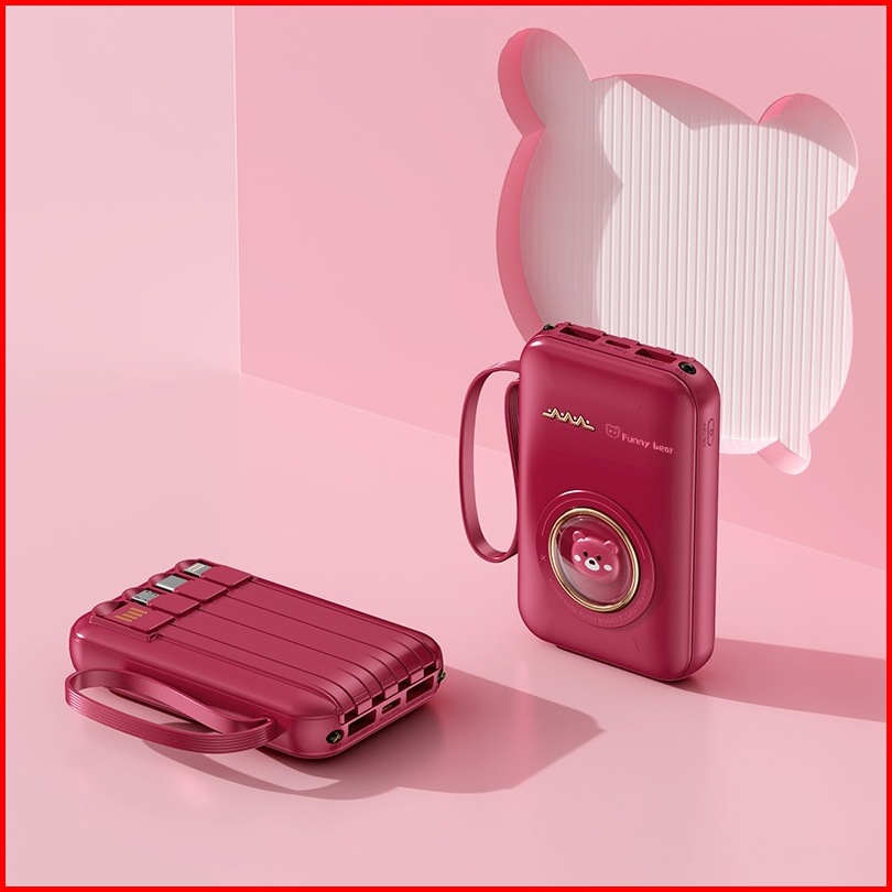 Riogo Slim Powerbank 20000mah Cute Mini Fast Charging With 4 Kabel Data Usb Type C Micro Led Senter