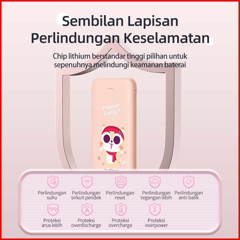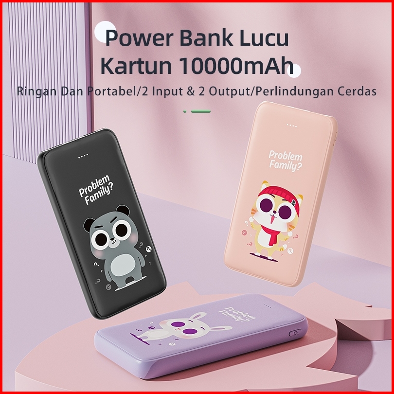 Kivee Powerbank 10000 Mah Mini Korea Style Kartun Lucu Dual Usb Ungu Pink Black - Garansi 1 Tahun