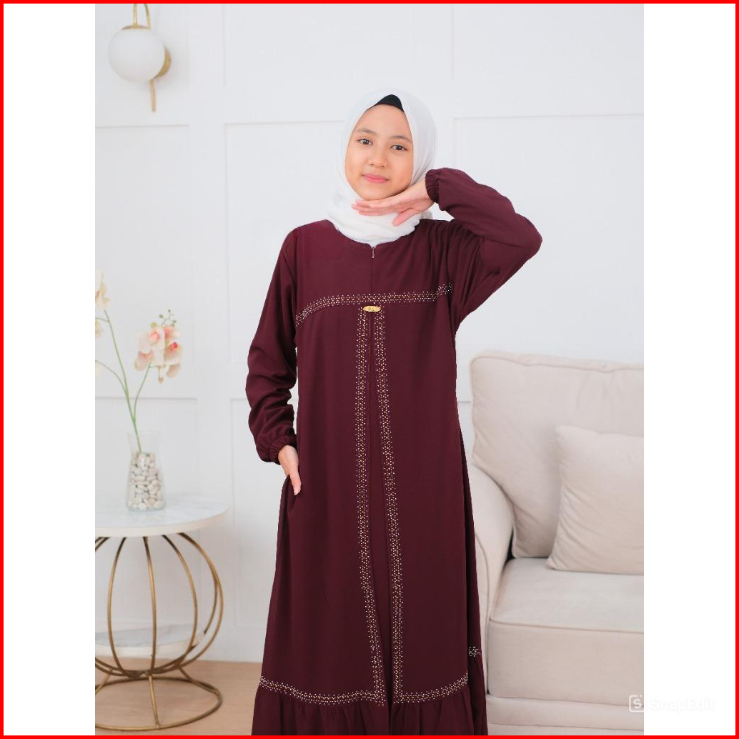 Gamis Anak Perempuan Khaileena Dress Ceruty Swarovsky Usia 6-14 Tahun Bahan Ceruty Babydoll Armani