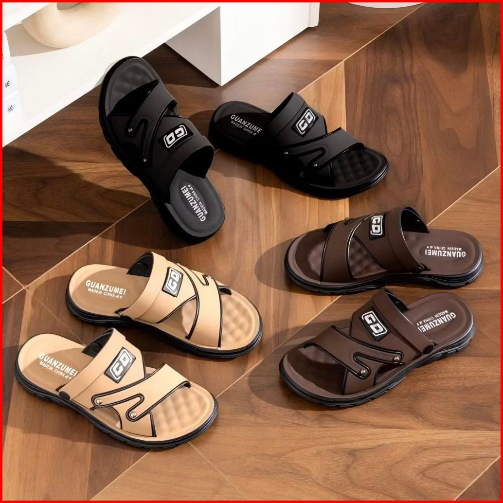 Sandal Kulit Pria Go Sandal Slide Stylish Kekinian Sandal Slop Viral Pria