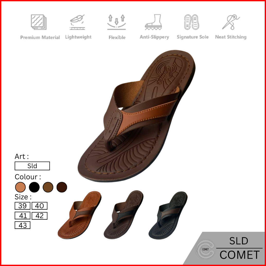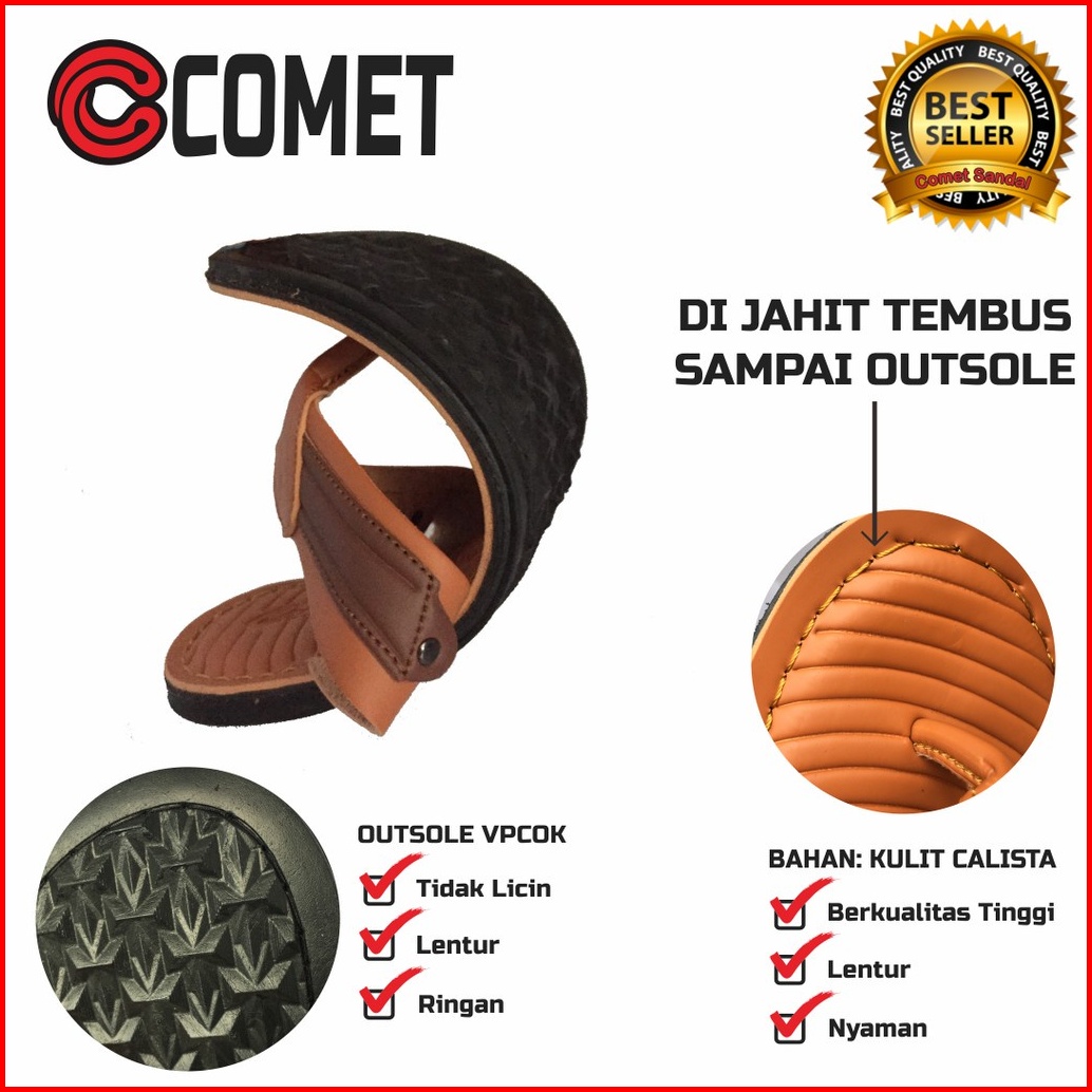 Comet - Sandal Jepit Pria Jahit Tembus Sandal Kulit Pria Dewasa Sandal Pria Casual Egan Terbaru39-43