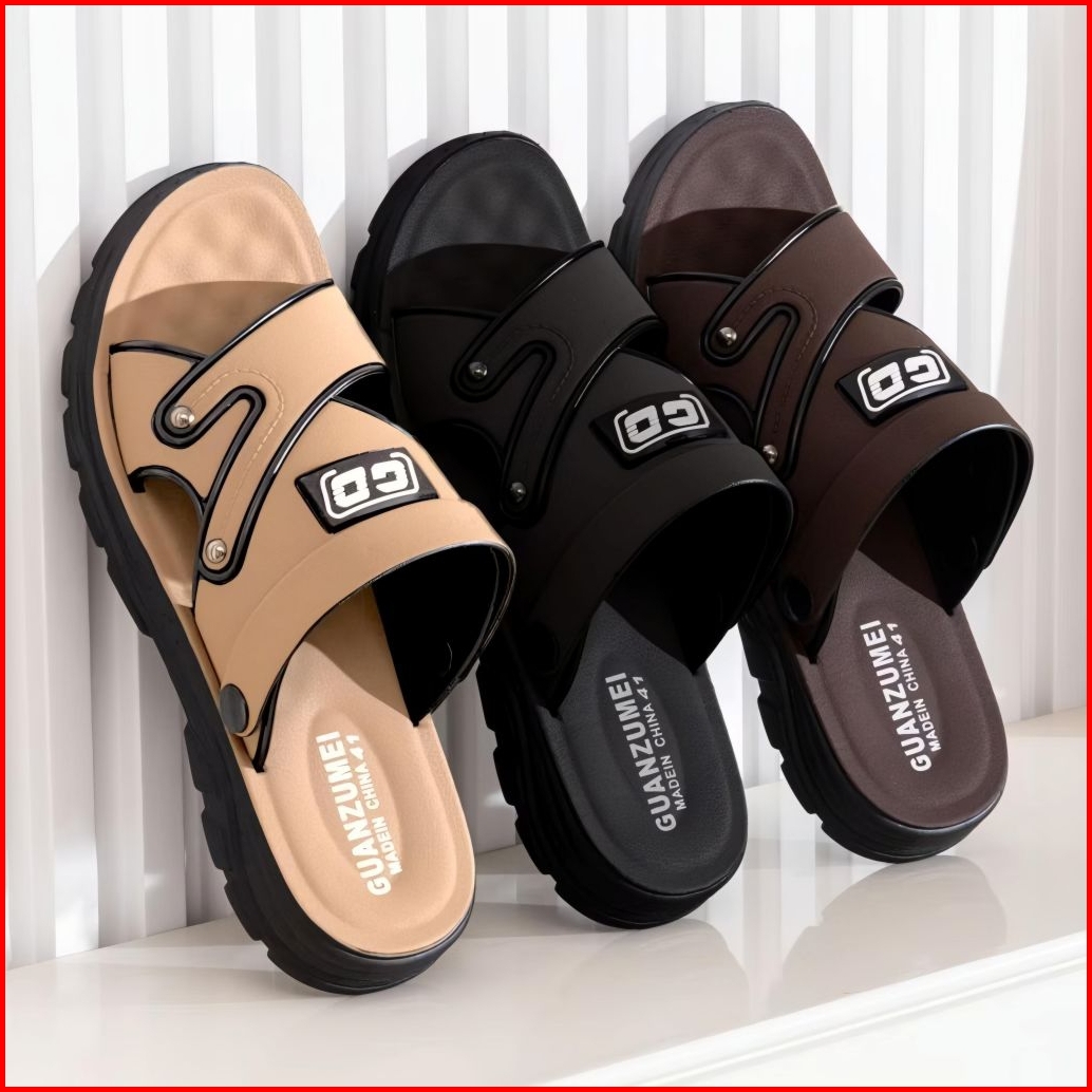 Sandal Kulit Pria Go Sandal Slide Stylish Kekinian Sandal Slop Pria