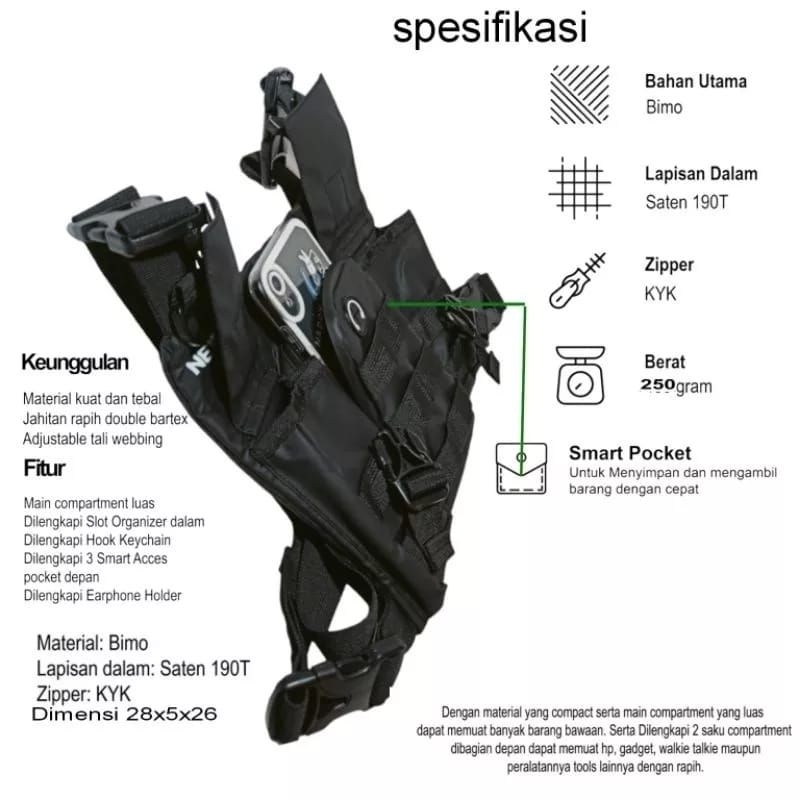Chest Bag Tas Dada Rompi Asli Anti Air Original Baepack Tas Pelindung dada Tas Rompi Selempang Dada Pria