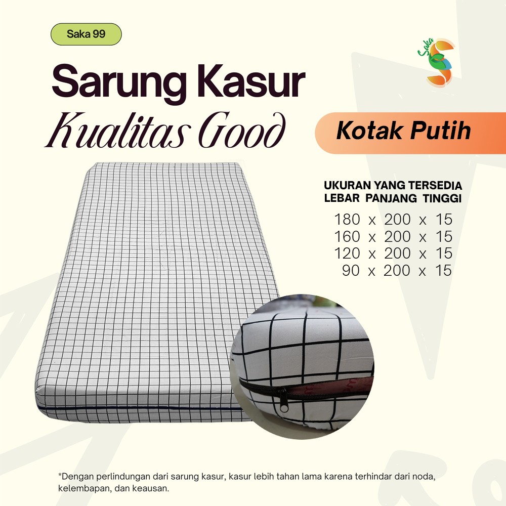 Sarung Kasur Busa Resleting 120x200x15 90x200x15/Sprei Resleting Aesthetic Kotak kotak
