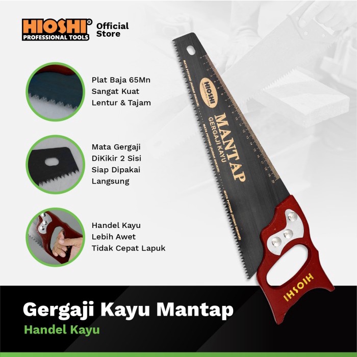 HIOSHI /Gergaji Kayu MANTAP/Tangan/Manual/Hand saw /Gorok/Gagang Kayu/POTONG/14 16 18 20 Inch - ECO