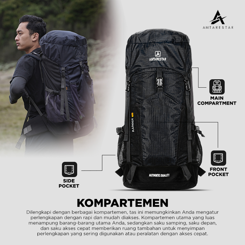 Tas Ransel Gunung Carrier Plus Rain Cover Antarestar Hiking Outdoor Backpack daypack Tas Gunung Backpack Keril 65L