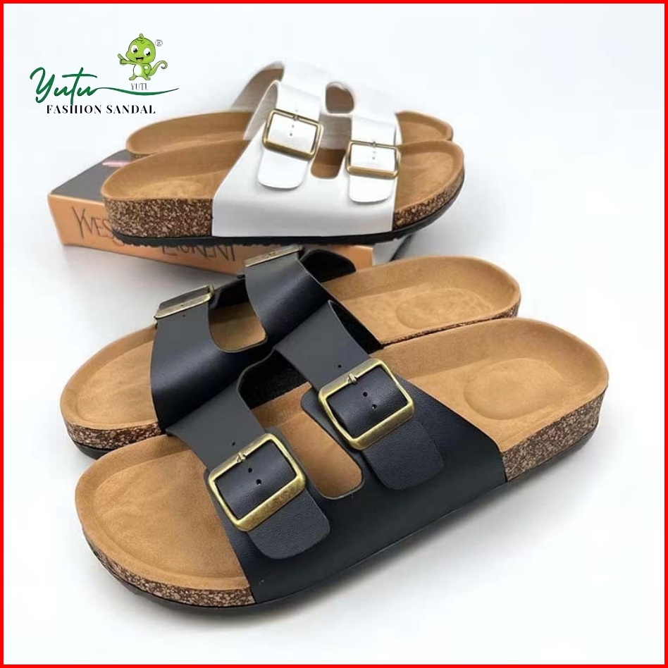 Yutu Sandal Slop Wanita Dewasa Remaja Strap Dua Gesper Bahan Karet Kulit Anti Slip Size 36-41