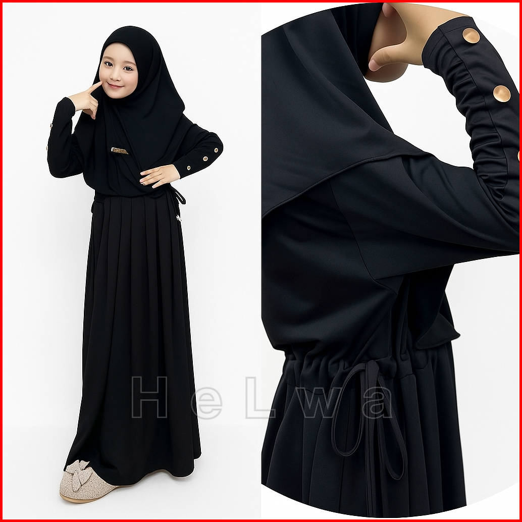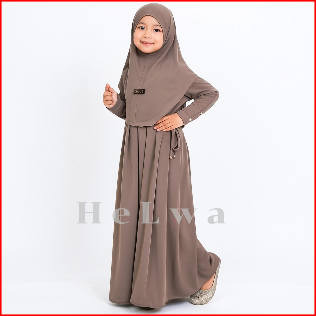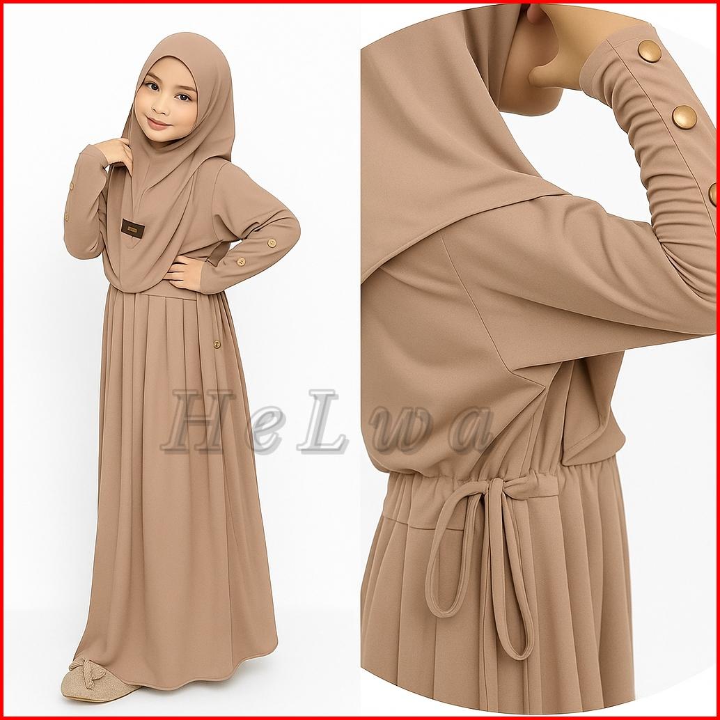 Gamis Abaya Vilia Set Hijab Gamis Anak Serut Pinggang Bahan Jersey Premium Usia 1-10 Tahun