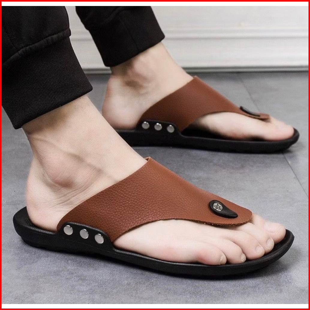 Sandal Jepit Pria Korea Kulit Kuat Tahan Air Keren Dan Nyaman Sandal Cina Sandal Santai