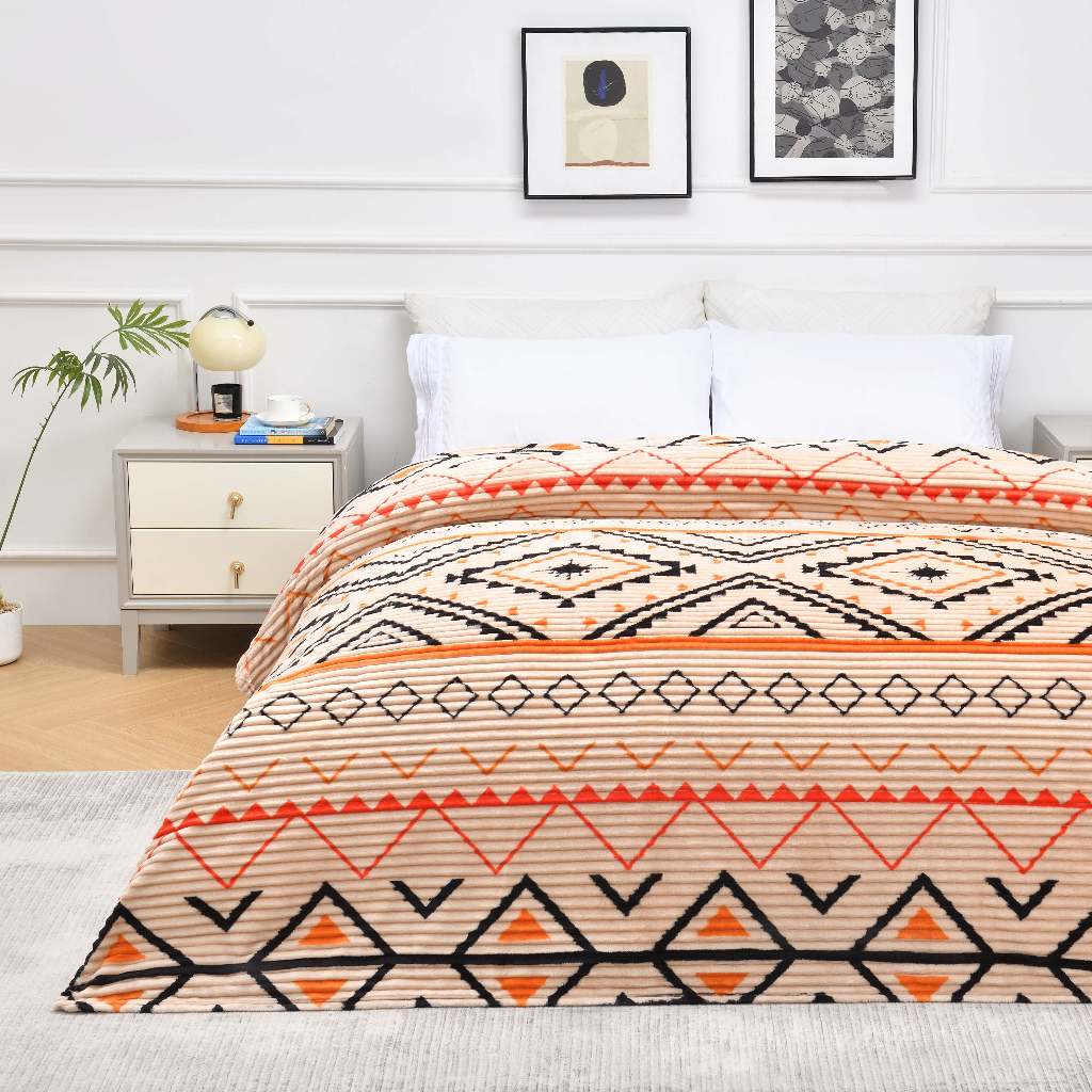 Unique Bohemian Selimut bulu halus Salur Printing 180 x 200 cm