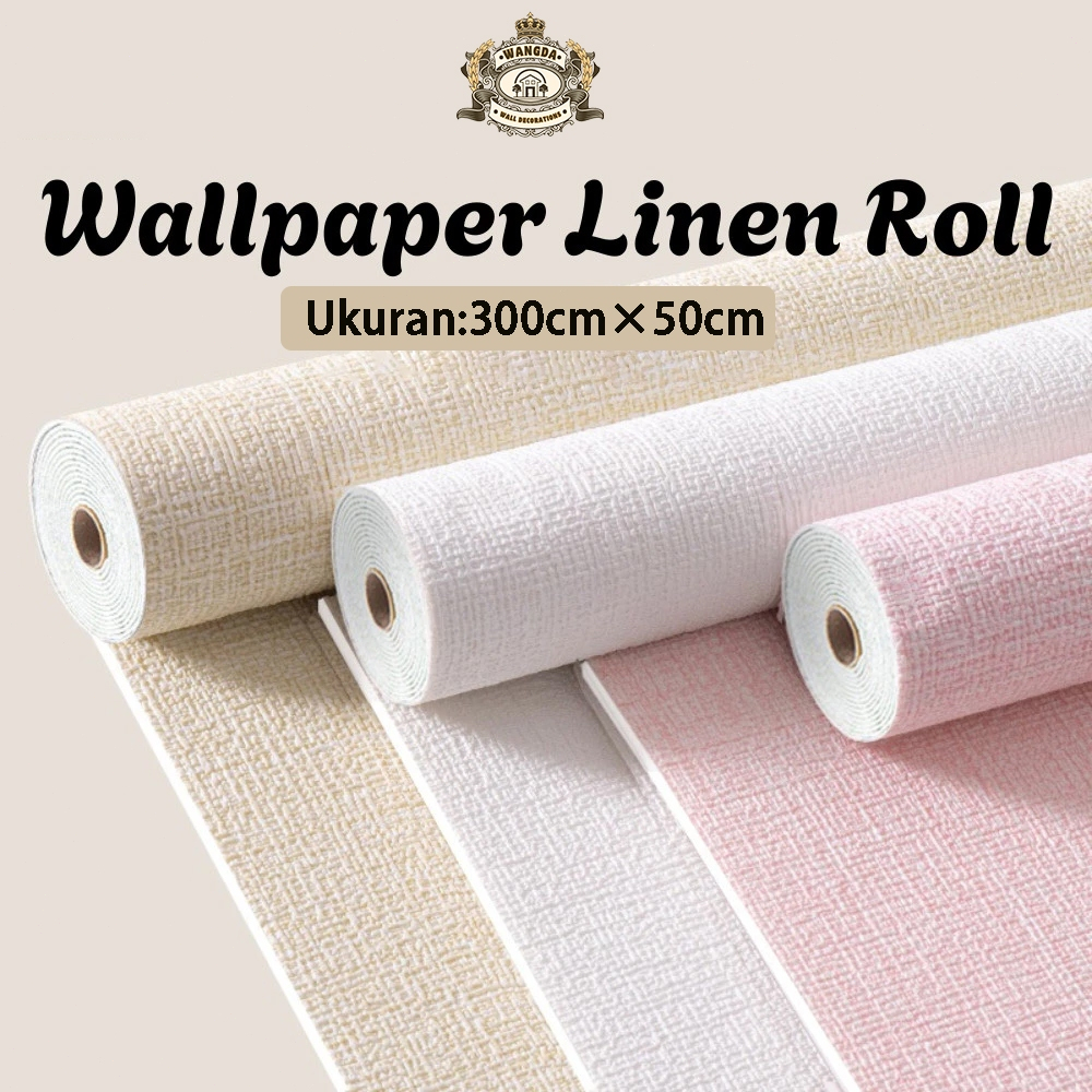Linen Roll 3D Wallpaper 3Mx50CM Wallpaper gulungan linen tebal wallpaper busa Sticker Dinding kamar