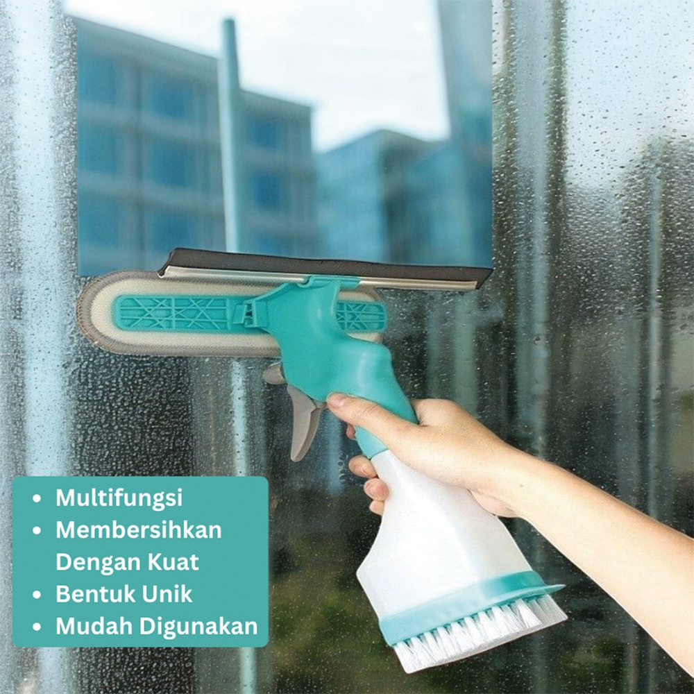Alat Pembersih Kaca Jendela 4in1 Alat Kebersihan Wiper Spray Window Cleaner Serbaguna