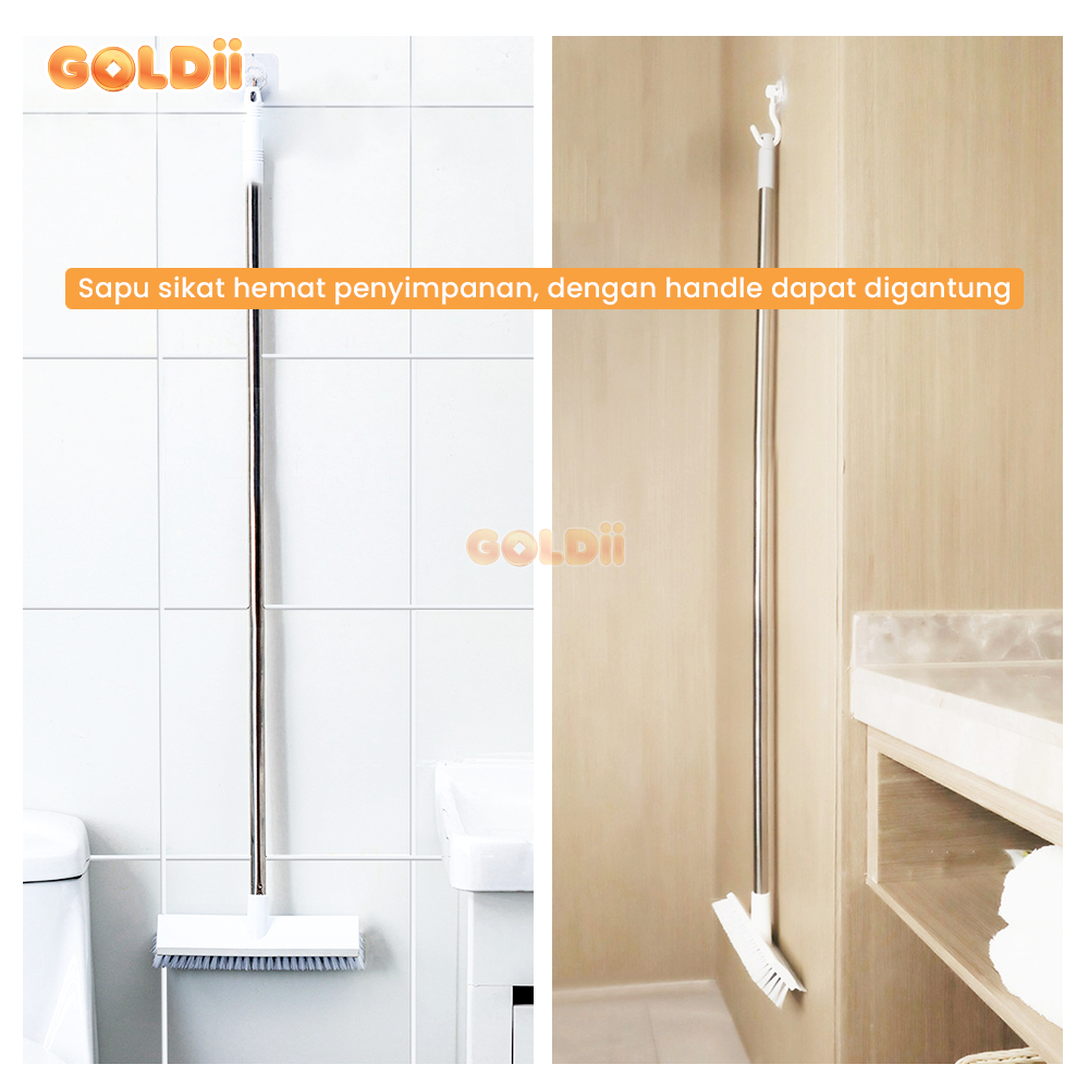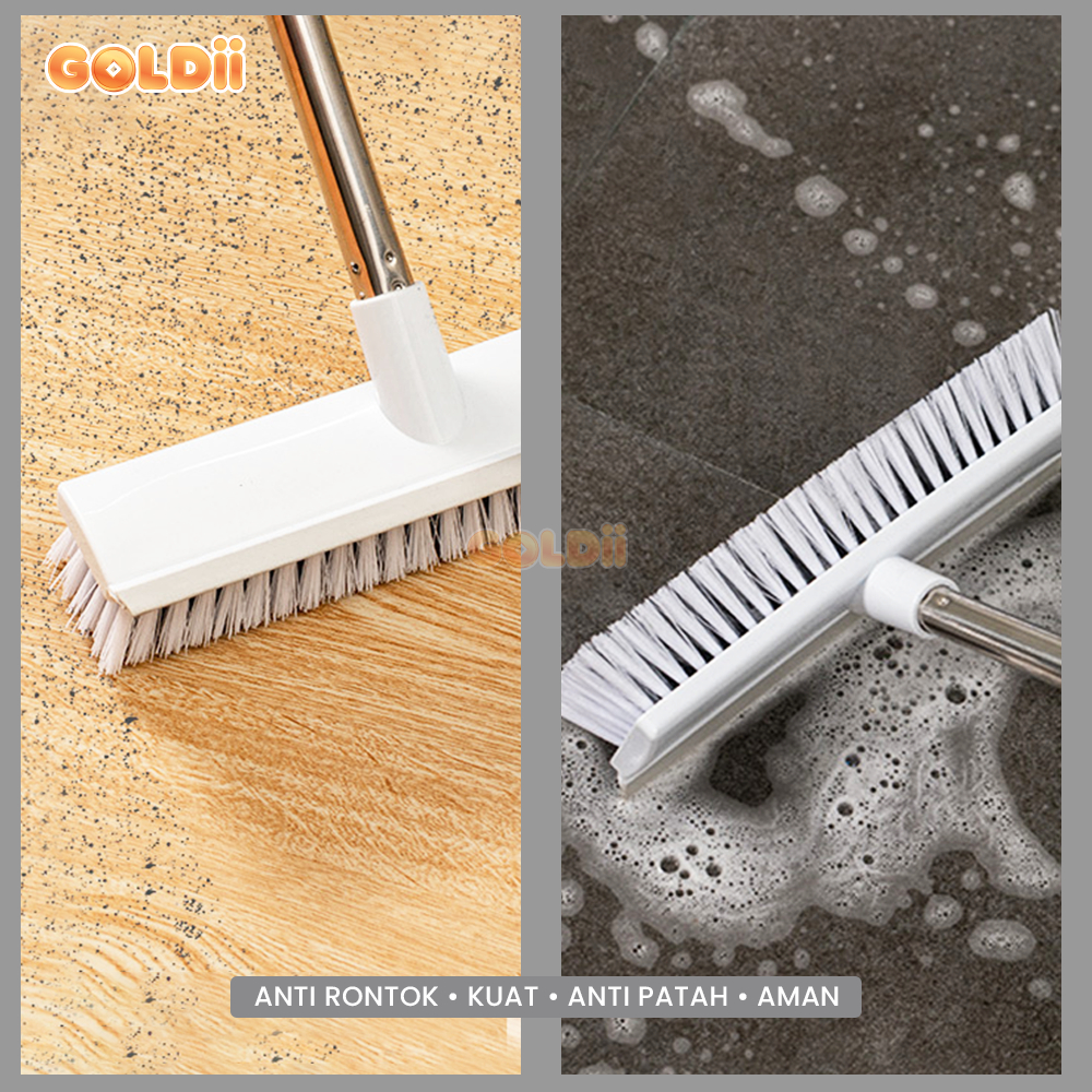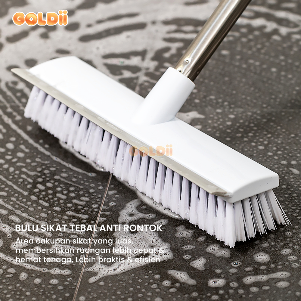 60lld5II - Sikat Pembersih Lantai Toilet Kamar Mandi 2 in 1 Praktis Serbaguna Serokan Air Gagang Panjang Warna Putih