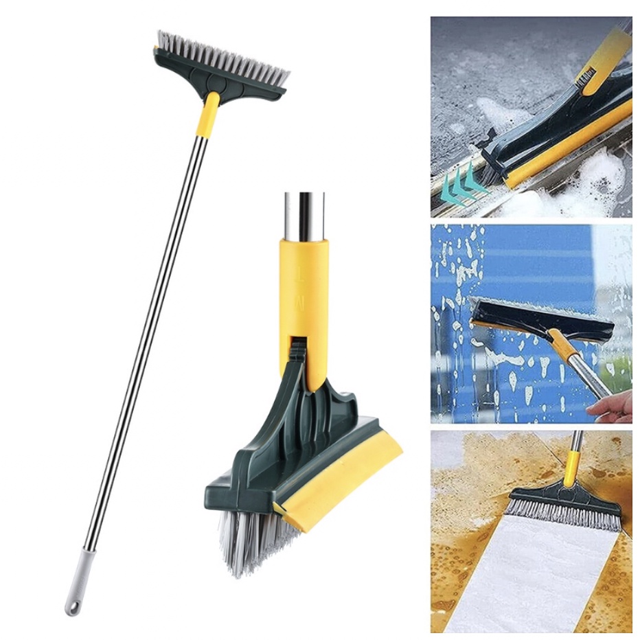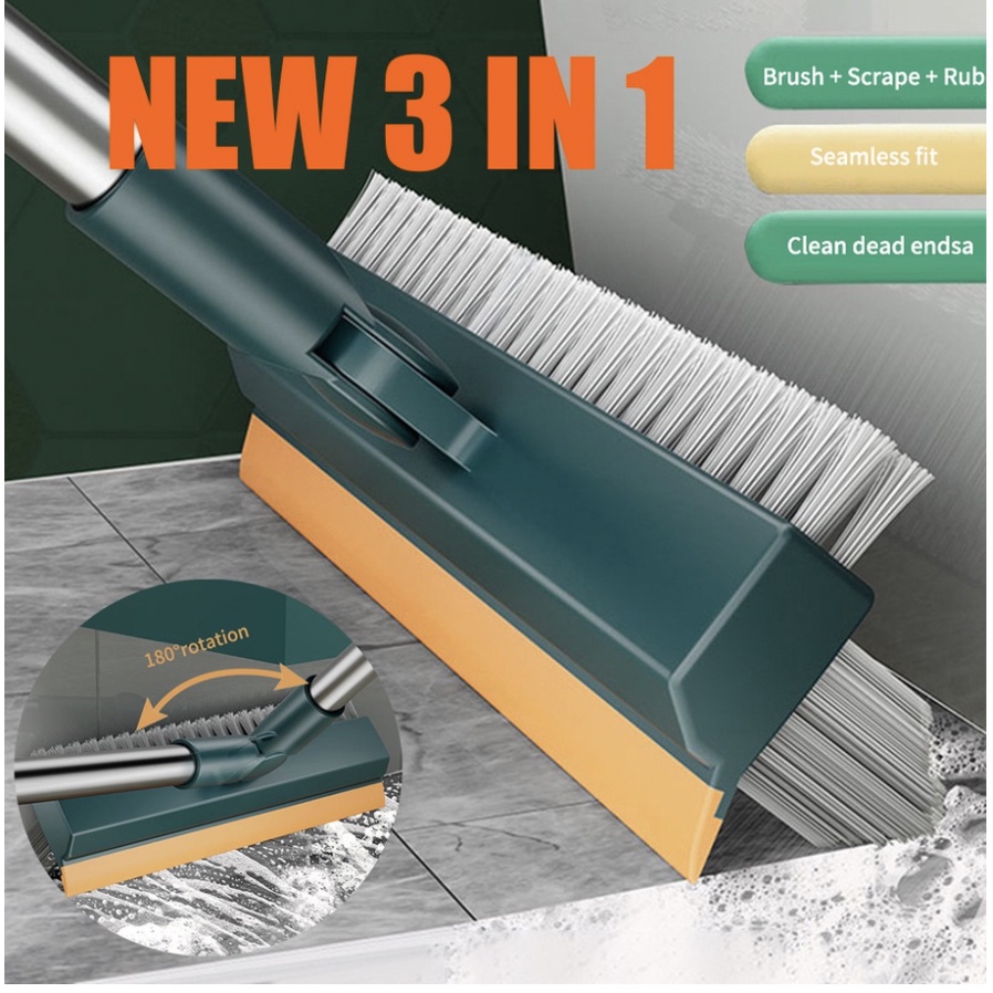 Sikat Lantai Wiper 3in1 Pembersih Lantai dan Dinding Kamar Mandi Gagang Panjang Portable Sapu Lancip Model V